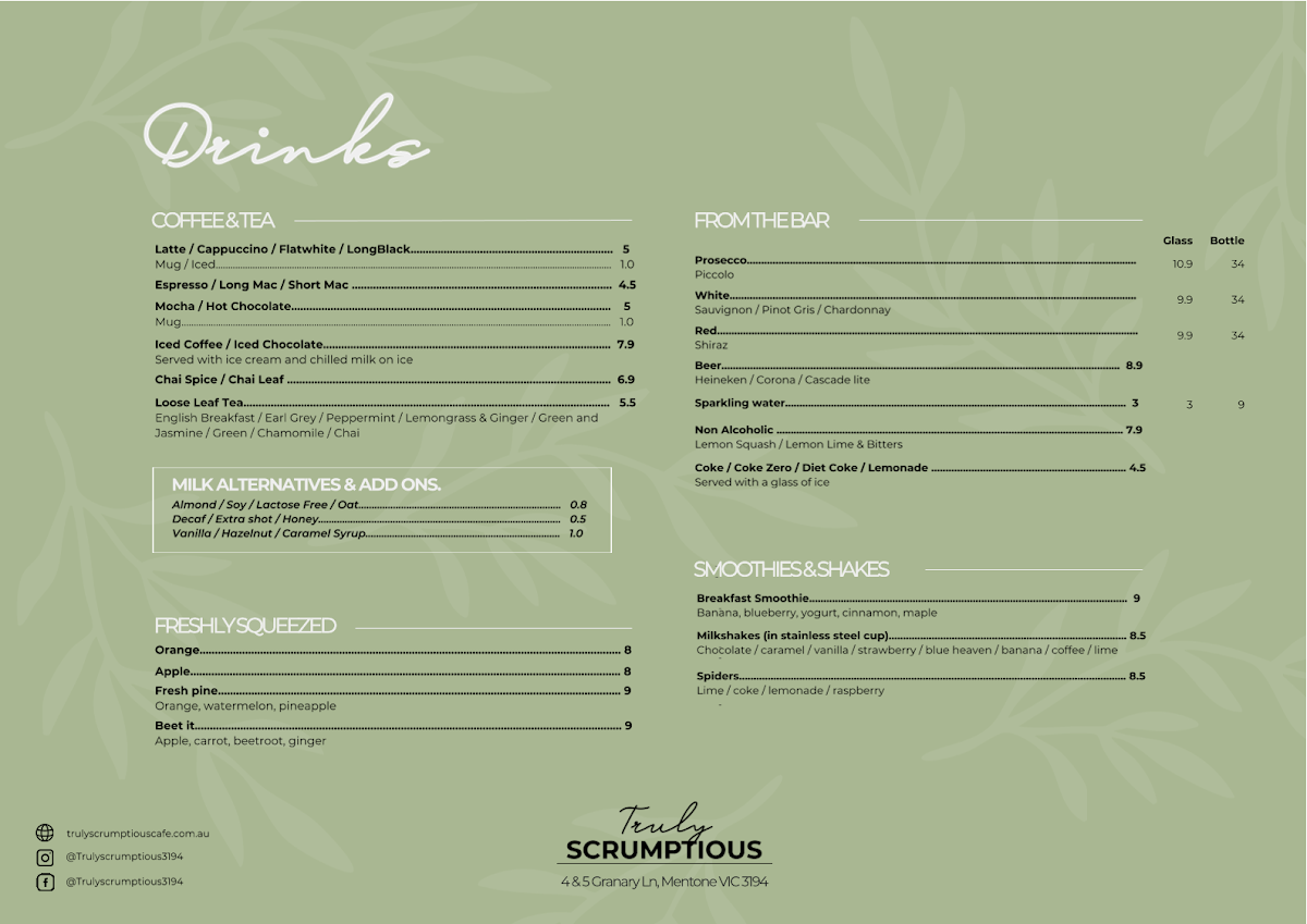 Welcome to Truly Scrumptious, a delightful cafe located at 4 & 5 Granary Lane in the heart of Mentone, VIC. This charming spot has quickly become a local favorite, known not just for its inviting atmosphere but also for its scrumptious selection of meals that are sure to tickle your taste buds.